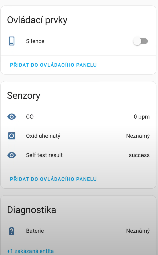 Po úspěšném připojení Zigbee2MQTT automaticky přidá detektor do Home Assistant.