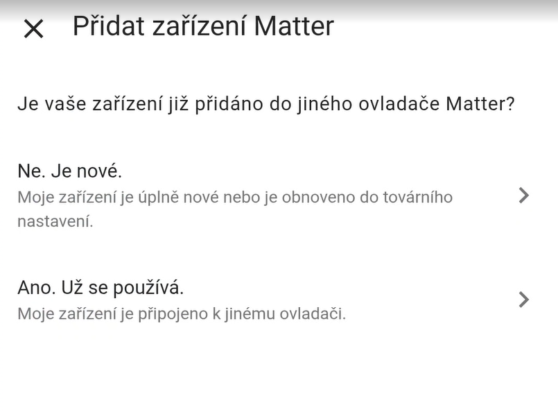 Zvolte "Matter" a postupujte podle pokynů na obrazovce.