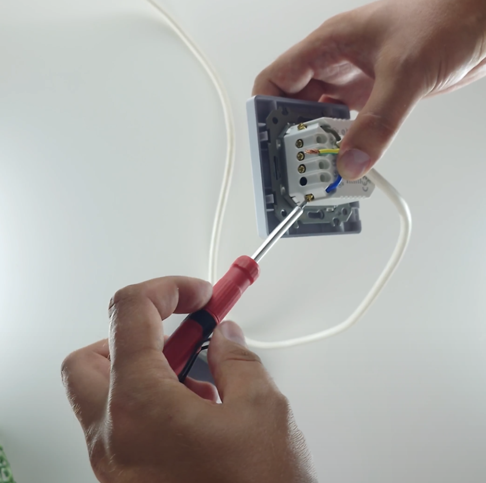 Po správném zapojení vodičů upevněte vypínač zpět do instalační krabice. Připevněte kryt a zkontrolujte, že vypínač pevně drží na svém místě.
