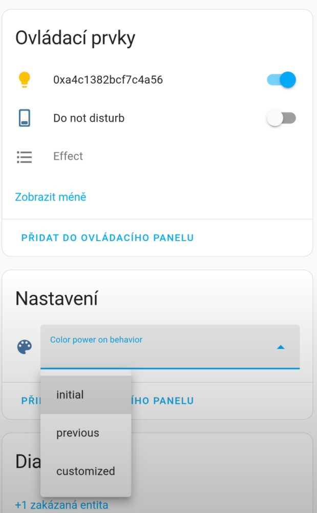 Po úspěšném připojení Zigbee2MQTT automaticky přidá žárovku do Home Assistant.