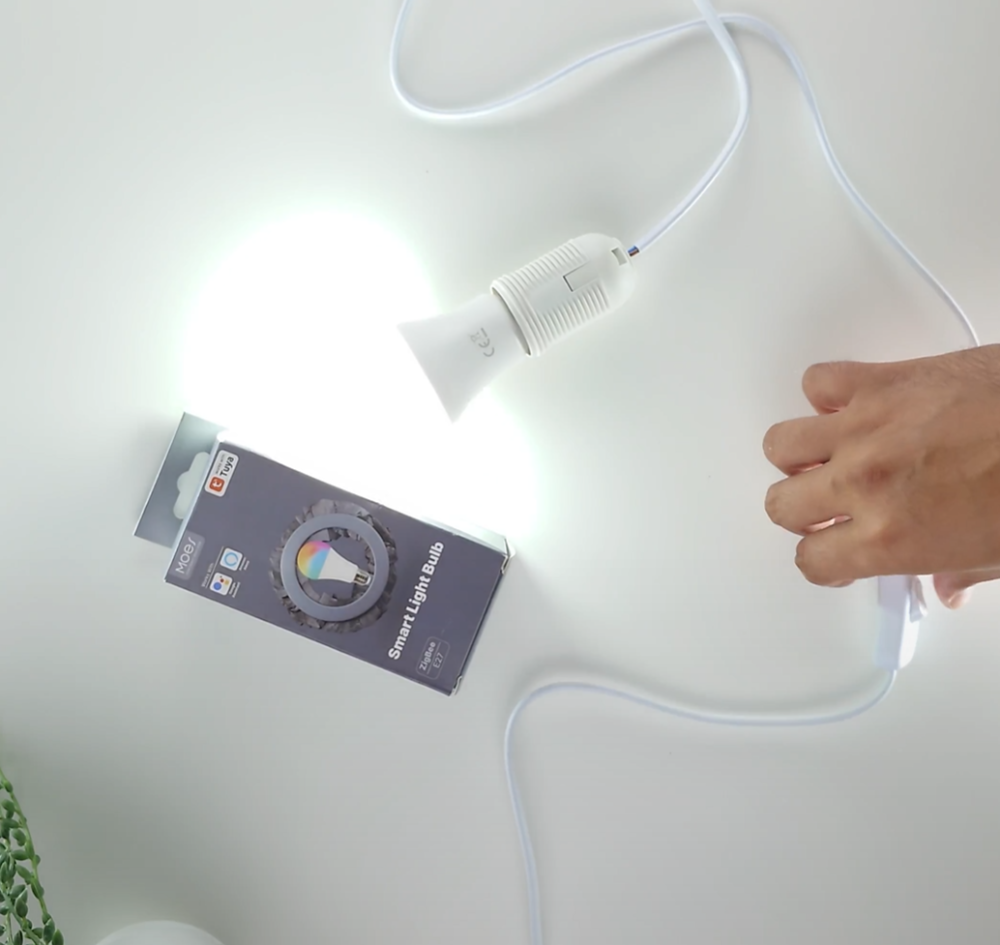 Ujistěte se, že máte vhodnou objímku (E27) a že je vypnutý hlavní přívod elektrické energie. Vyšroubujte starou žárovku a zašroubujte chytrou žárovku MOES. Ujistěte se, že je žárovka pevně zašroubovaná a poté zapněte elektrický proud.